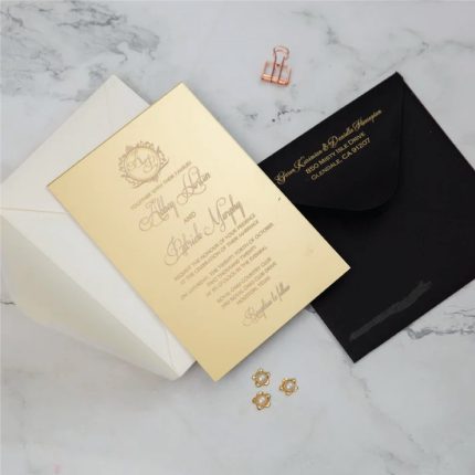 Golden Acrylic Invitation with Black Velvet Envelope