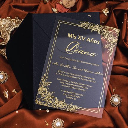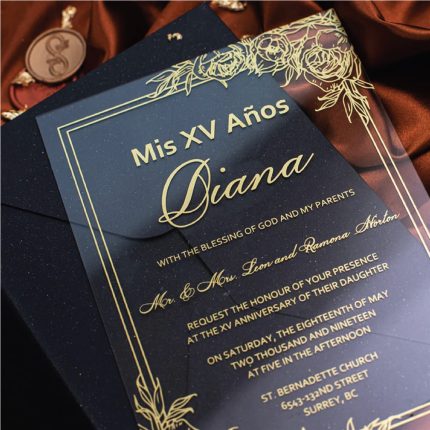 Acrylic Invitation with Gold Font & Black Envelope