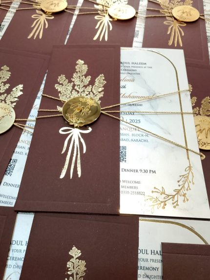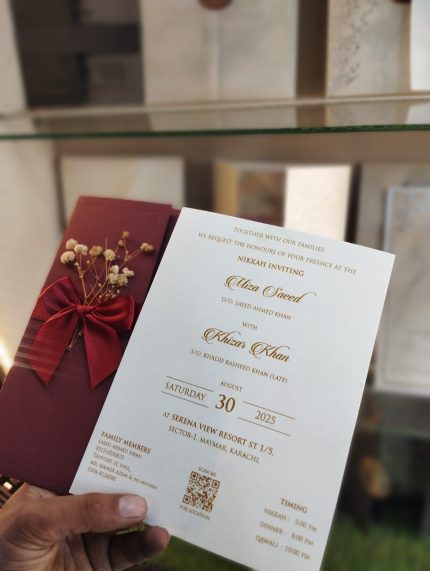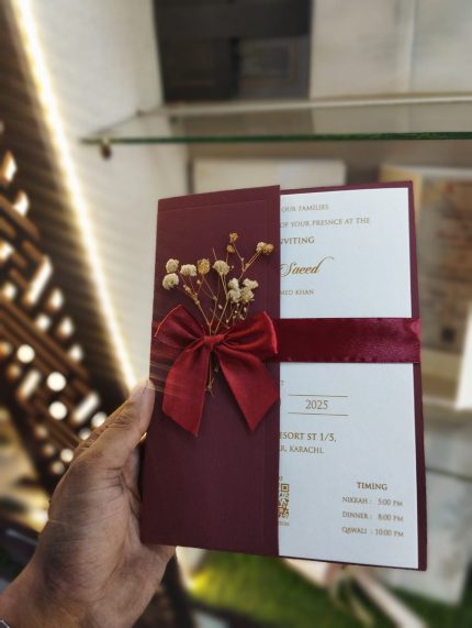 Mehroon Single Flap with Flower & Ribbon Bow Envelope with Gold Printed Inner