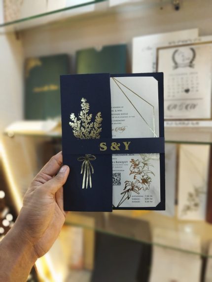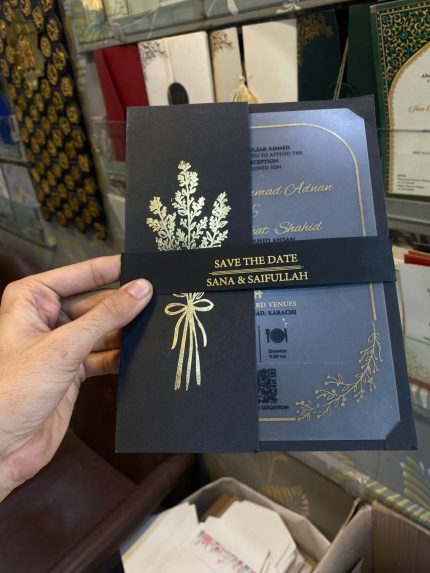 Velvet Black Invitation with Floral Inner & Baby Breath Flower