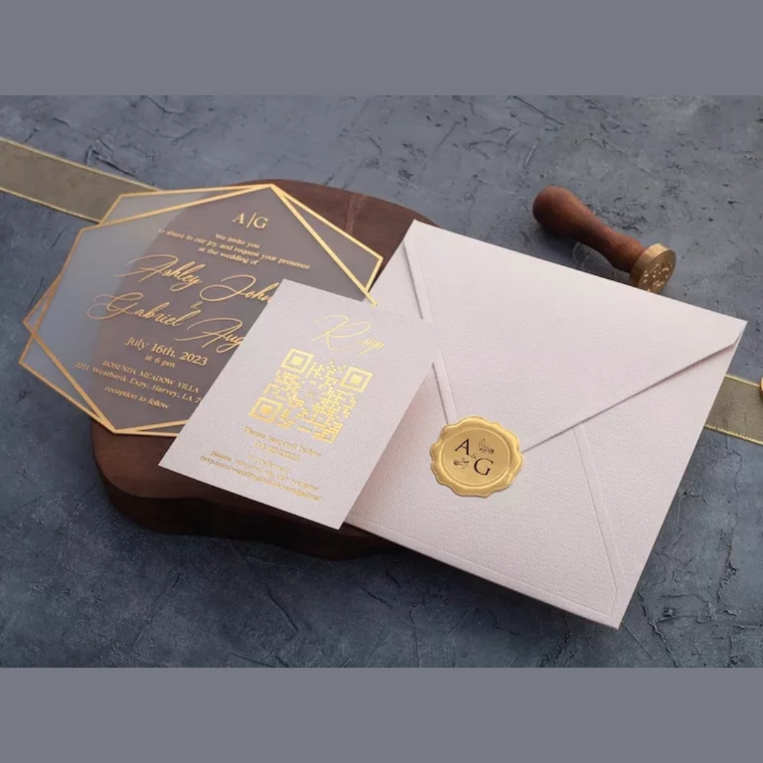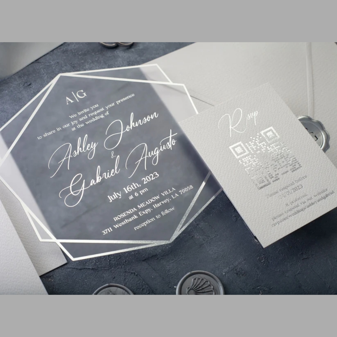 Perfect for weddings, anniversaries, or upscale events, this invitation set promises to captivate your guests with its distinctive shape, premium quality, and opulent details.