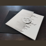 - Sophisticated black envelope with the bride and groom’s names printed on the back